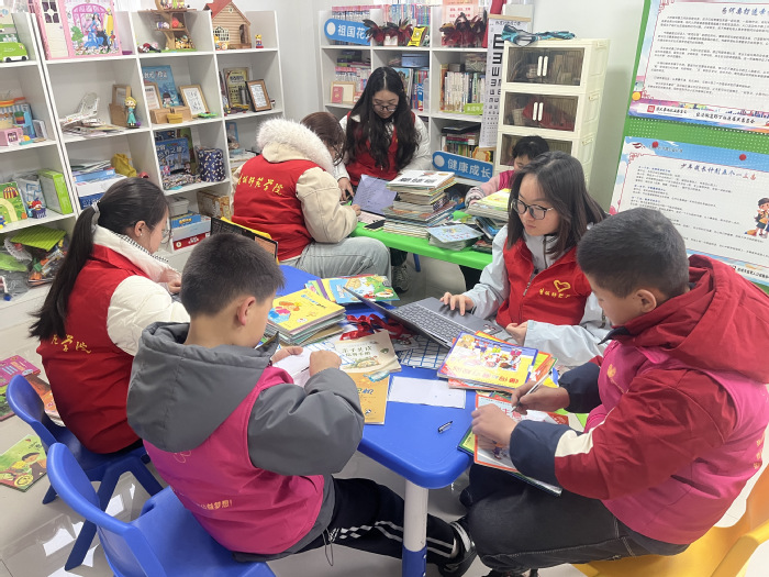 捐赠结束后,志愿者们迅速投入到图书整理工作中,与社区儿童一起有条不紊地为每一本图书贴上检索标签,细致核对图书信息、分类归档,同时熟练将图书信息汇编成电子版,进一步规范图书管理流程,方便孩子们查阅借阅,用耐心与细心为社区儿童打造整洁有序的阅读环境。